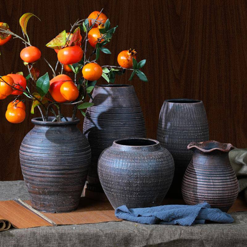 斑驳复古新中式 饰品摆件玄关电视柜插花水培陶瓷花瓶 陶罐侘寂风装