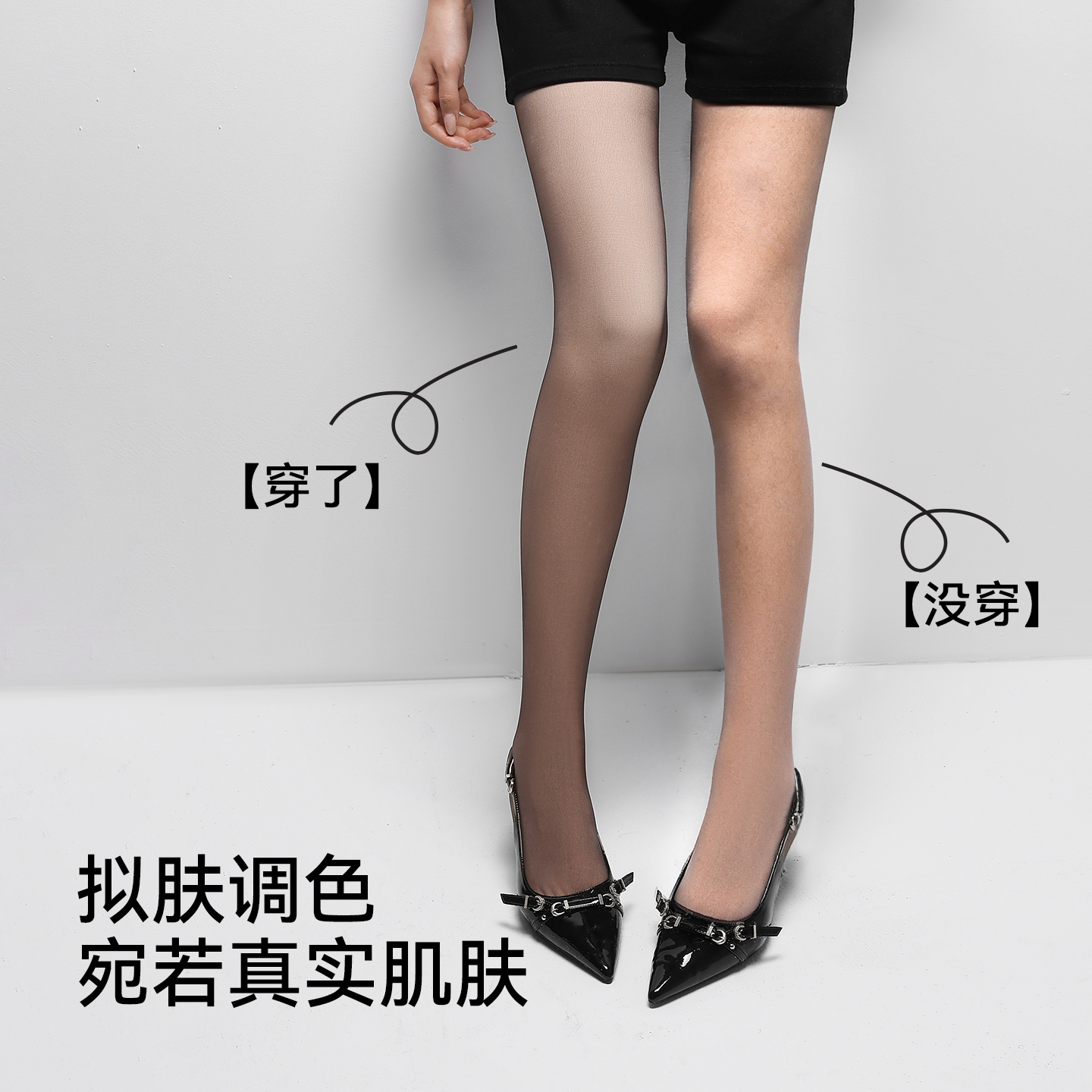 黑透肤光腿神器女加绒黑色丝袜秋冬高透裸感加厚保暖打底裤 袜 连裤
