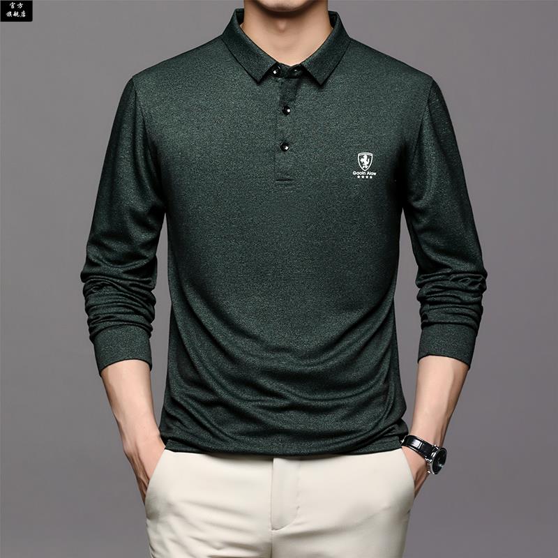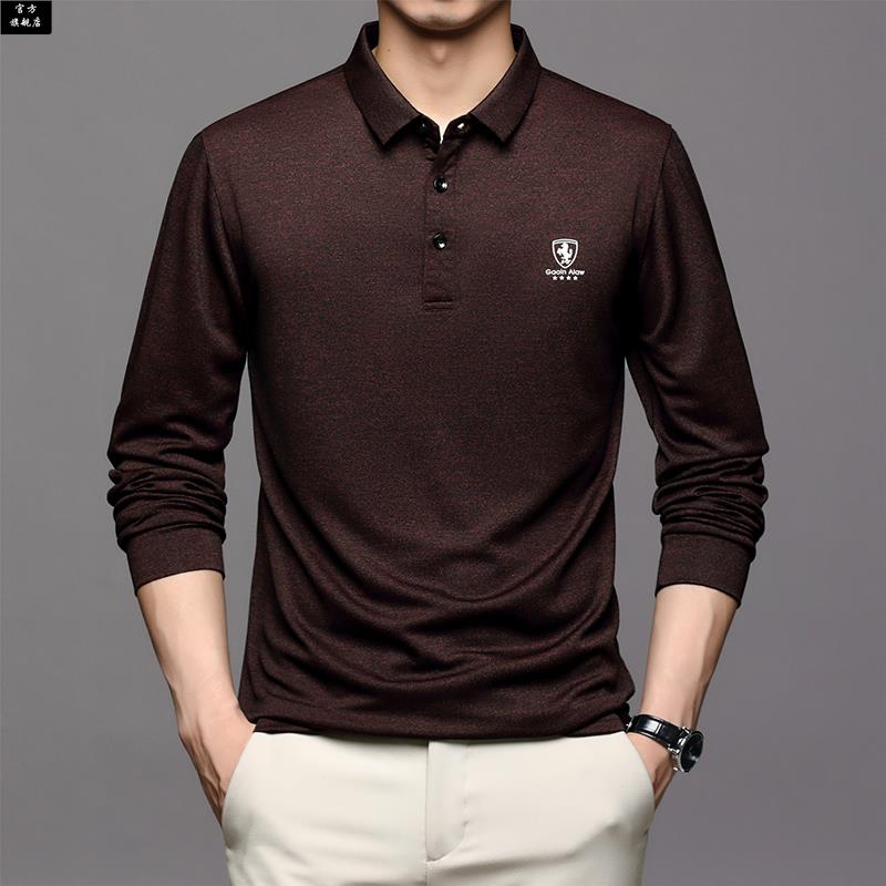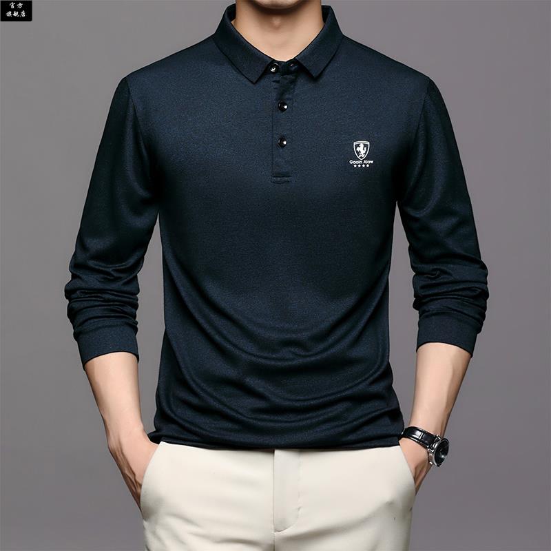 中年男士 上衣夏季 长袖 爸爸秋装 薄 T恤中老年男装 保罗官方2025新款