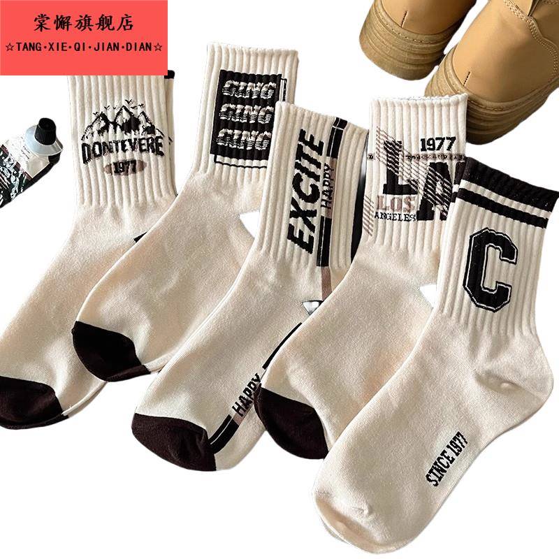 秋冬女袜2025新款 中筒袜女士袜子 粉色可爱少女卡通棉袜搭配小皮鞋
