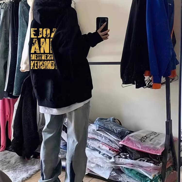特大码 潮牌加厚重磅秋冬加绒宽松连帽卫衣男女情侣外套2 300斤美式