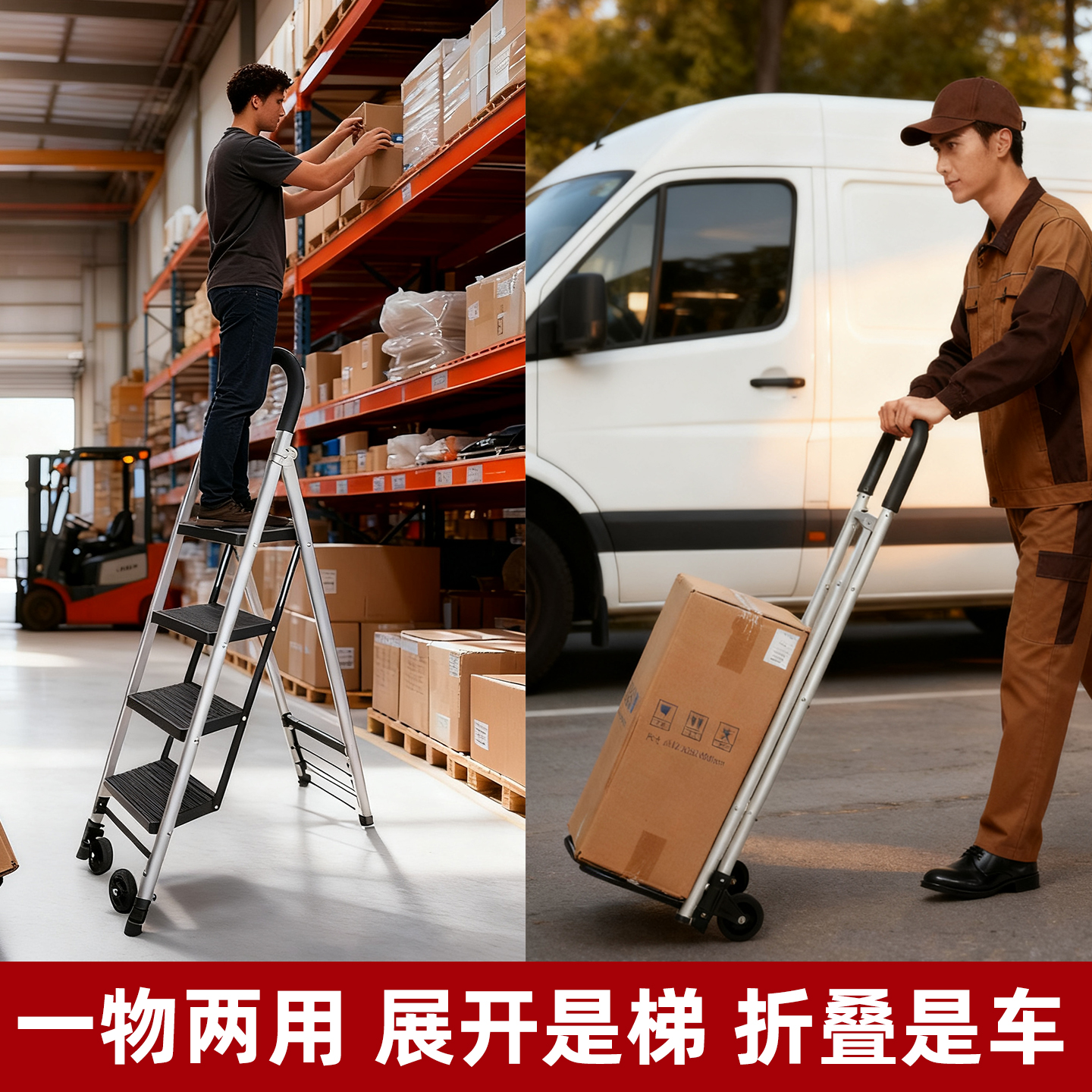 轻便推拉车承重专用安全耐用结实稳固人字梯乔迁收纳带轮变形梯子