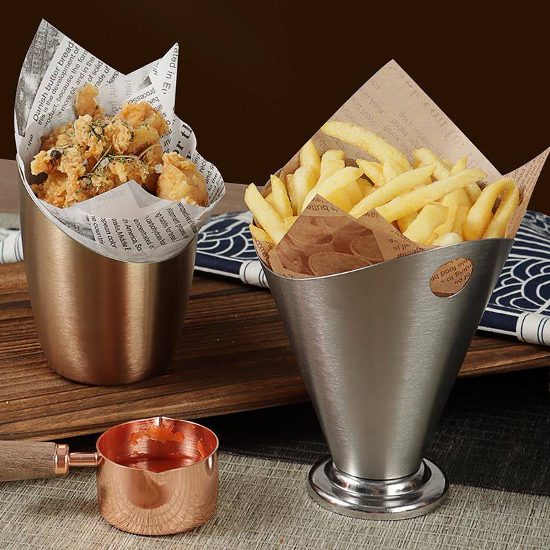 不锈钢薯条桶小吃提冰桶韩式 薯条炸鸡桶酒吧餐厅冰粒桶油炸食品篮