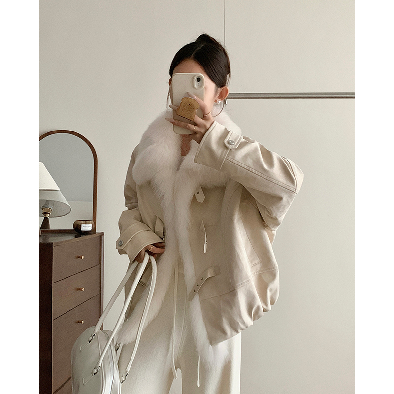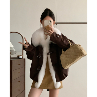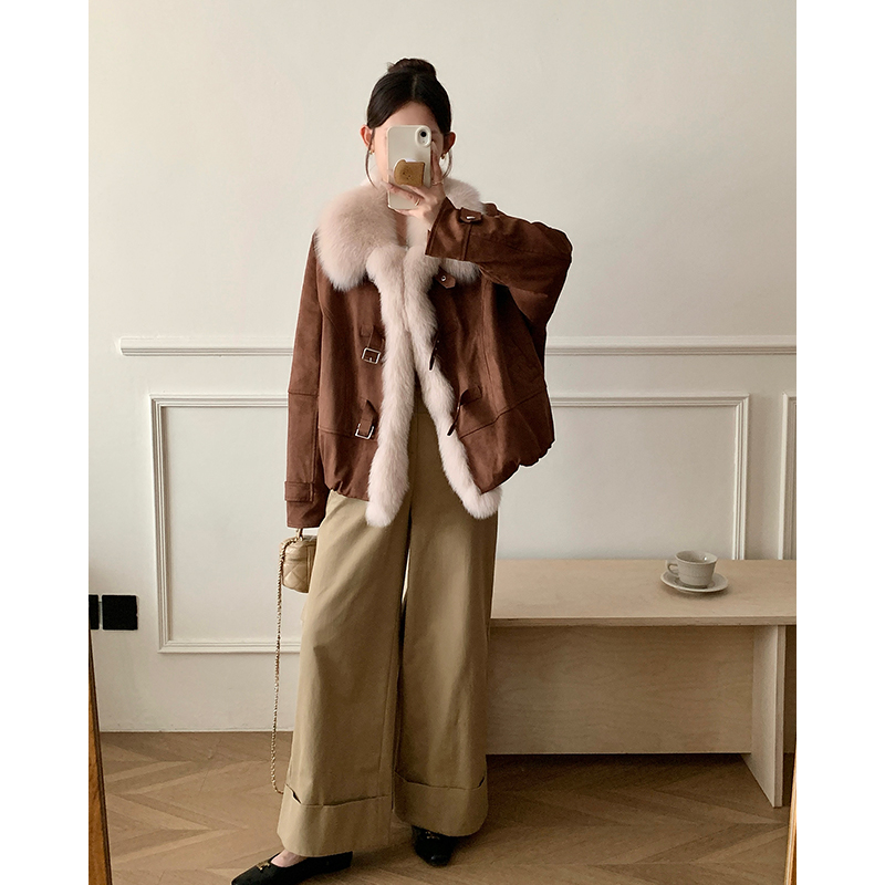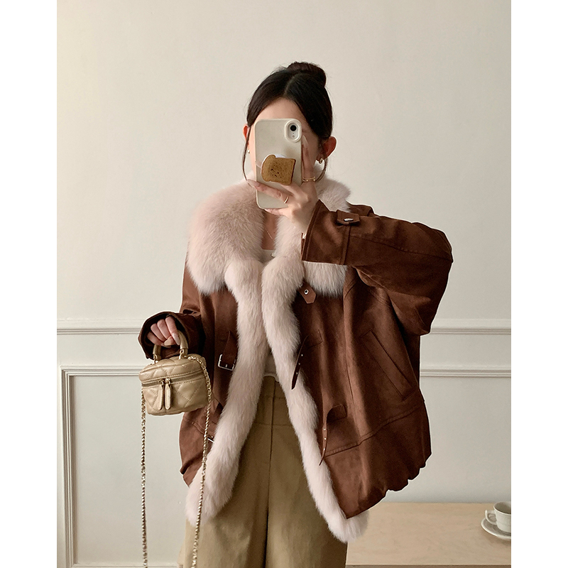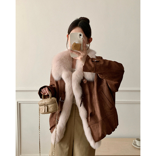 狐狸毛皮草外套女短款 麂皮绒B2079 小个子鹅绒内胆2025年轻款