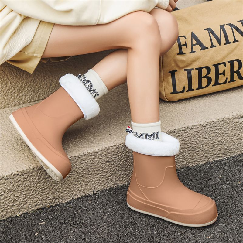 女士防滑棉水鞋 新款 冬天加厚加绒一体绒保暖雨鞋 雨靴女款 雨靴 时尚