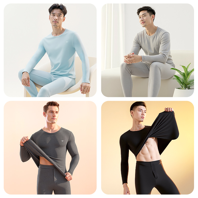 棉毛衫 七匹狼男士 轻薄高弹秋衣秋裤 7A抗菌打底衫 纯棉保暖内衣套装