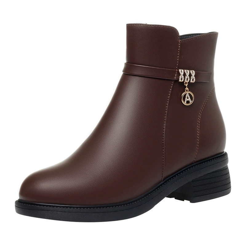 皮鞋 中老年妈妈短靴女鞋 41加绒保暖棉鞋 真皮粗跟软底大码 秋冬新款