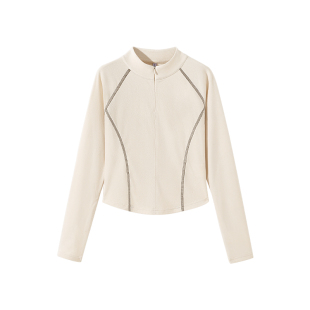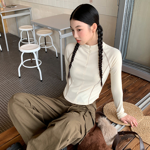 流行半高领内搭拉链长袖 秋冬季 上衣 女2025新款 KV真维斯薄绒打底衫