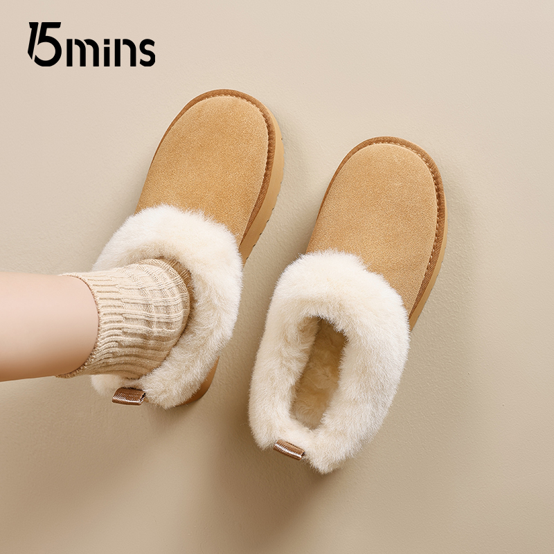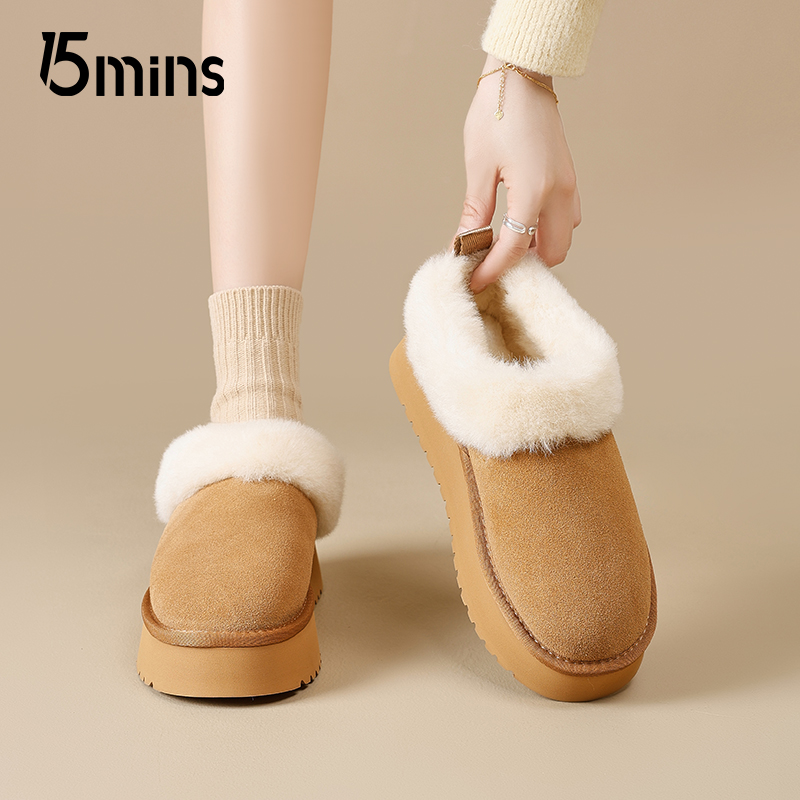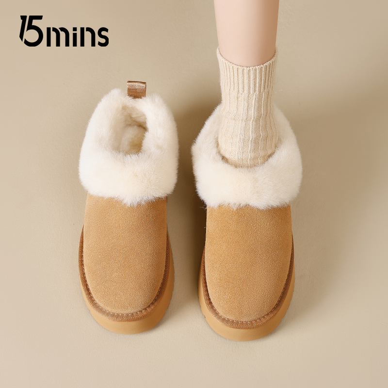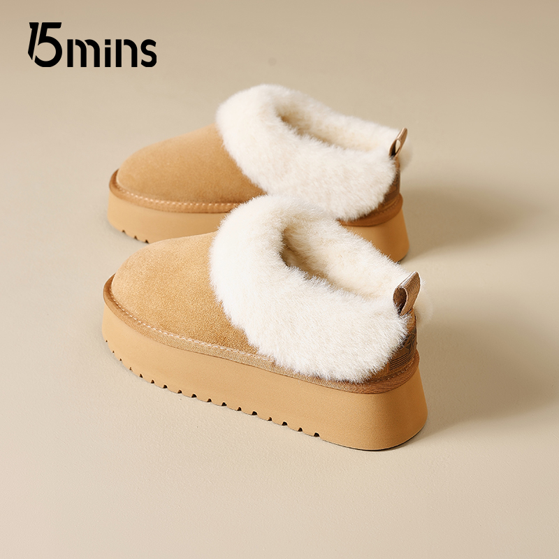 外穿防滑棉鞋 厚底加绒保暖面包鞋 2025新款 15mins毛绒雪地靴女冬季