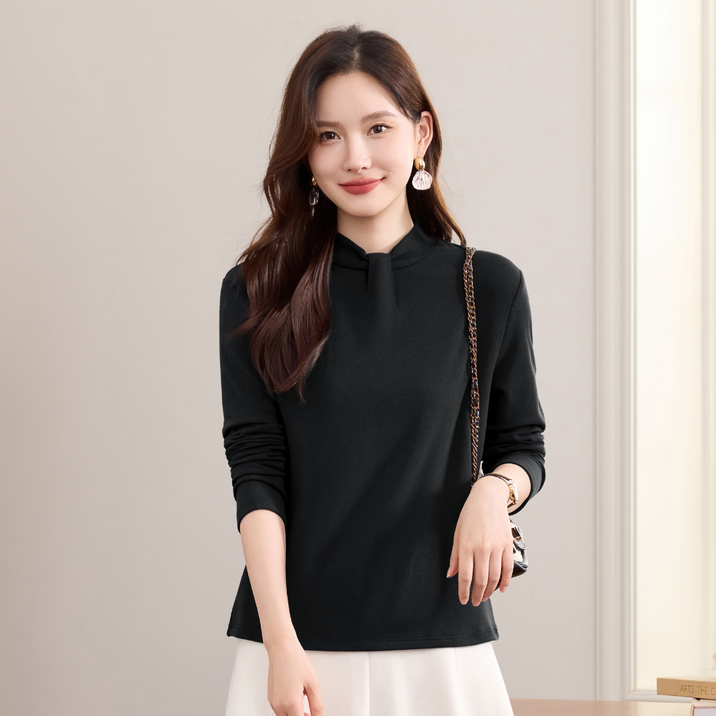 洋气爆款 2025新款 单穿上衣 t恤女士秋冬加绒内搭半高领打底衫 长袖