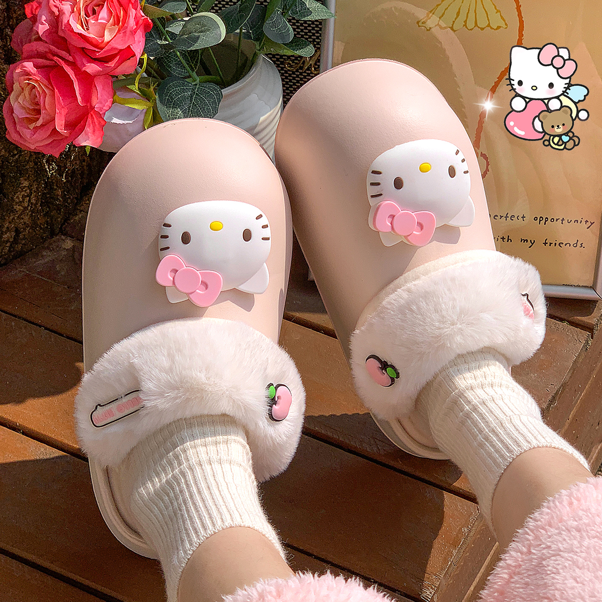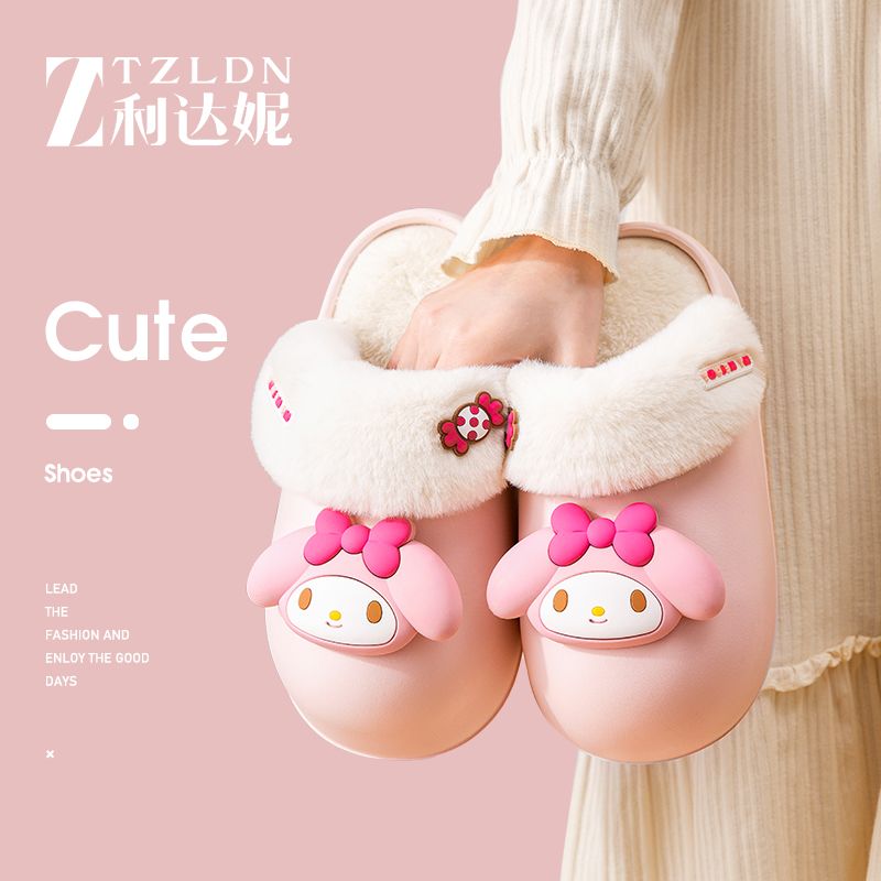 室内家居可拆卸保暖包跟毛绒鞋 冬季 秋 女2025新款 美乐蒂防水棉拖鞋