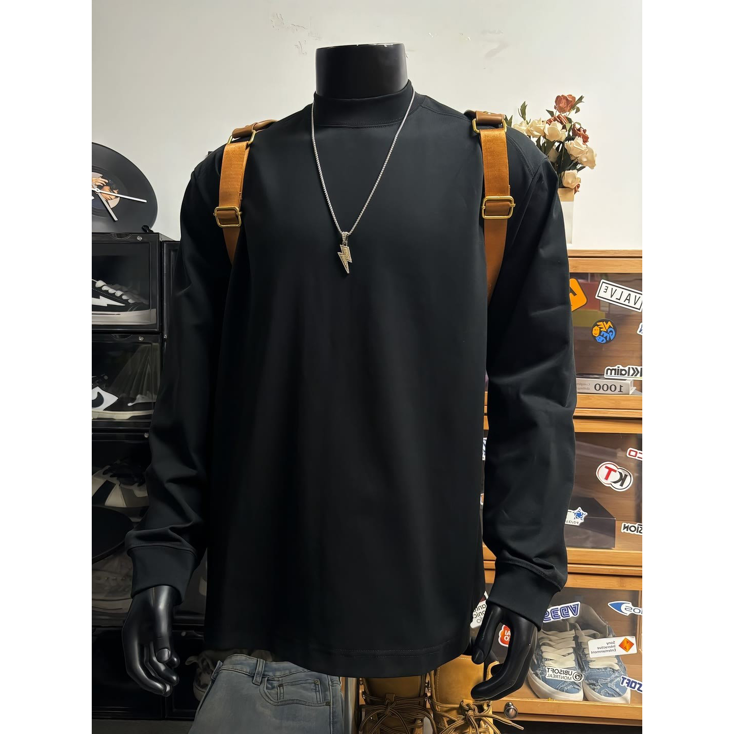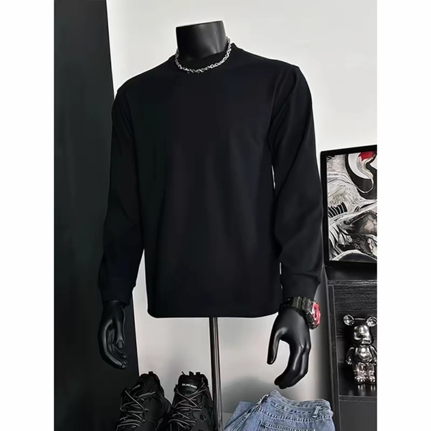 cleanfit小领口纯棉卫衣内搭打底衫 黑色美式 秋季 t恤男款 重磅长袖