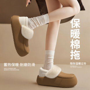 外穿防滑室内家居可拆卸加绒保暖棉鞋 冬季 女 女2025新款 防水棉拖鞋