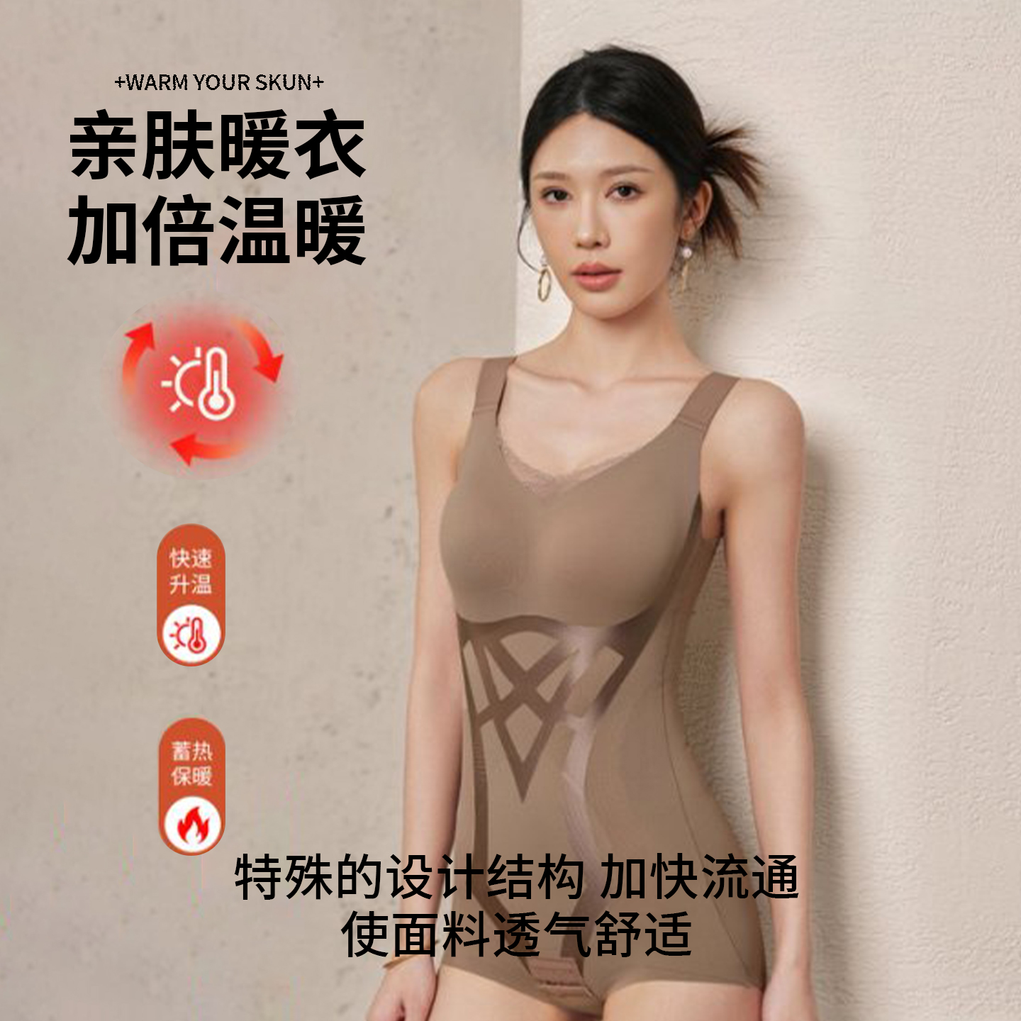 婷美塑身连体衣女2025秋冬新款 保暖免穿文胸显身材束身打底内搭