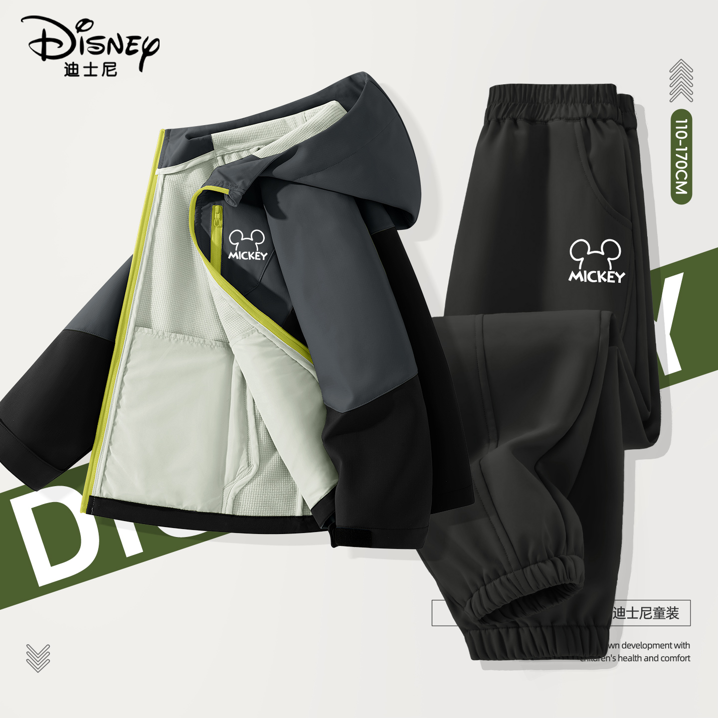 大童运动服儿童外套冲锋衣加绒裤 秋冬装 子 2025新款 迪士尼男童套装