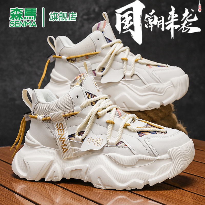 靴子 真皮防水厚底增高工装 森马马丁靴男秋季 高帮百搭休闲白色板鞋