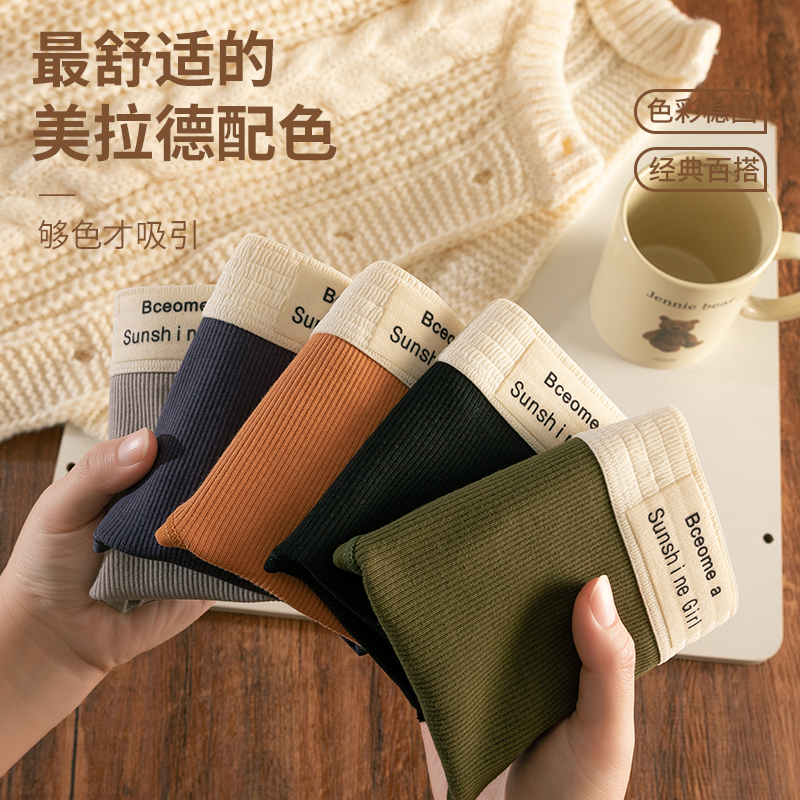 女生 女100%纯棉裆布三角短裤 6Caria Knar新高弹中腰宽边包臀内裤