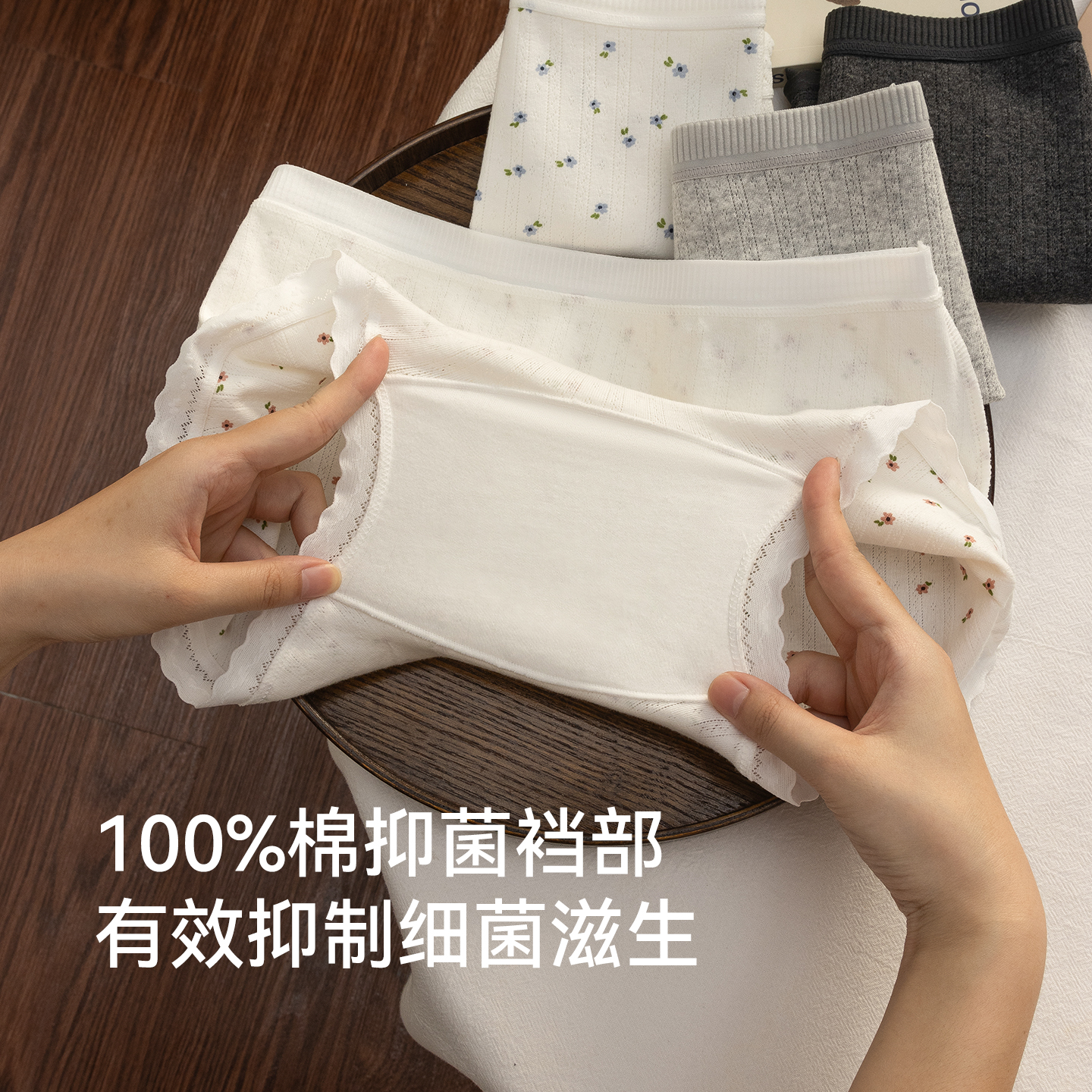 藤蔓棉质底裆性感蕾丝中腰平角裤 免定金 女花 爱慕内裤 3件包