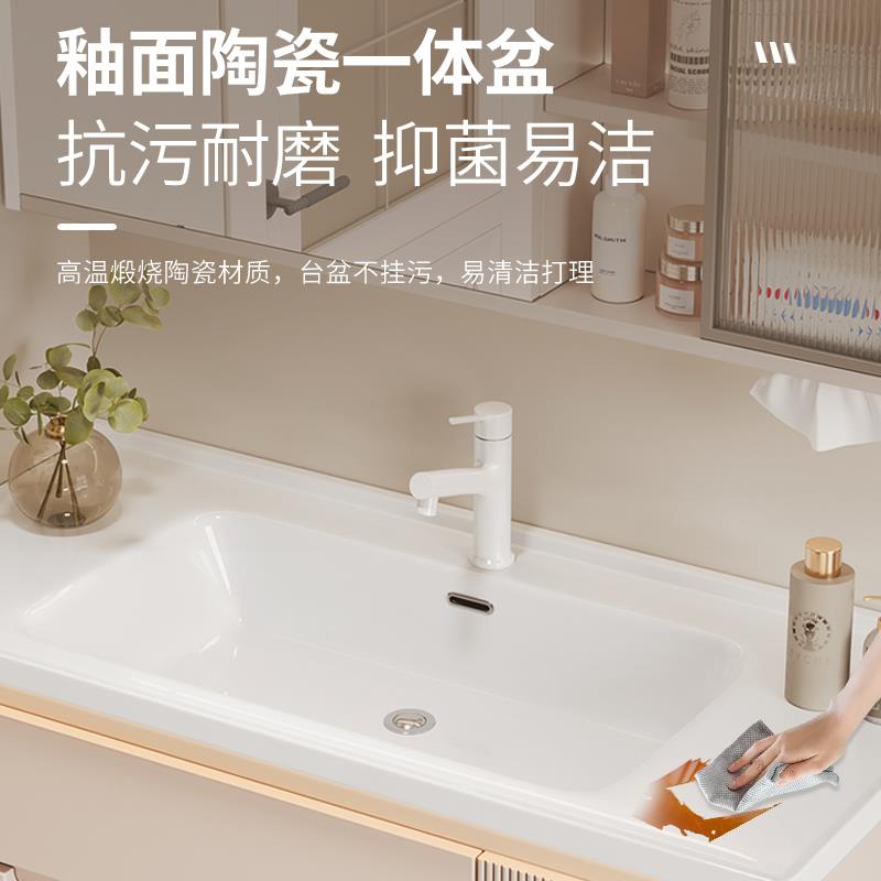 奶油风浴室柜陶瓷一体盆智能卫浴柜组合卫生间洗漱台洗手洗脸盆柜