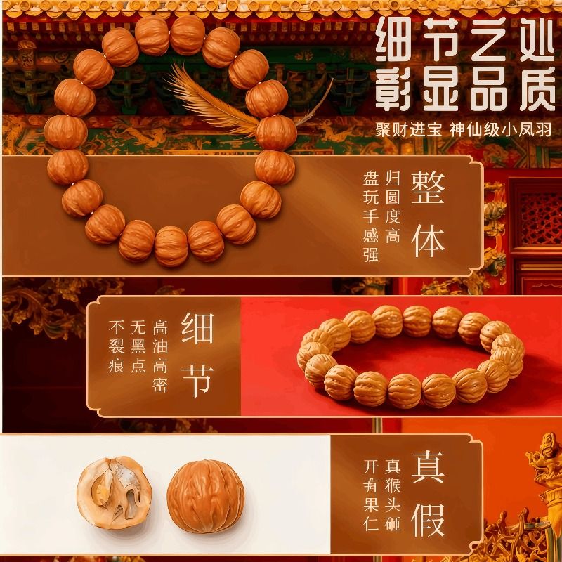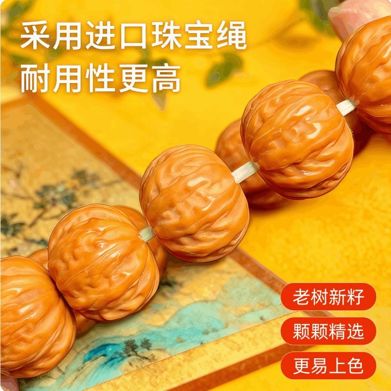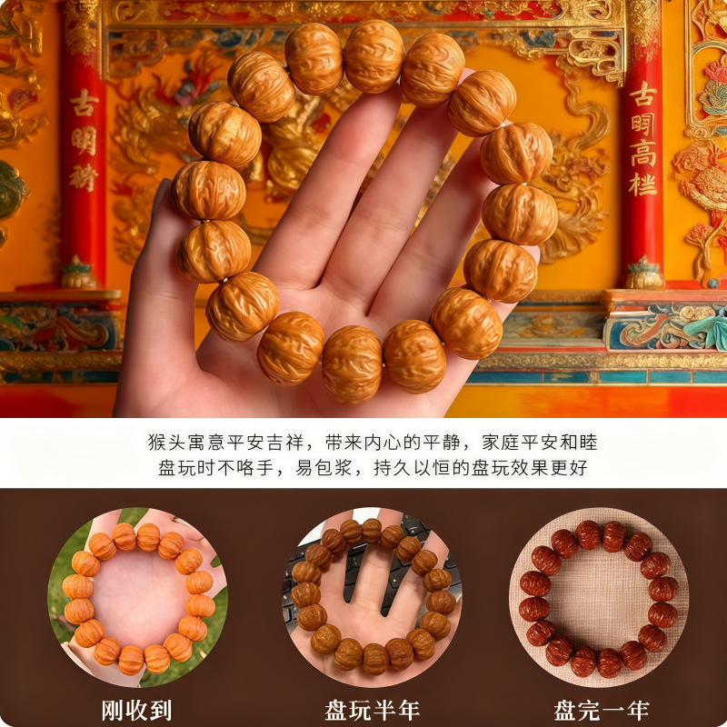 野生猴头手串雕刻粗筋京八棱矮桩核桃文玩单圈佛珠女蛇年文玩佛珠