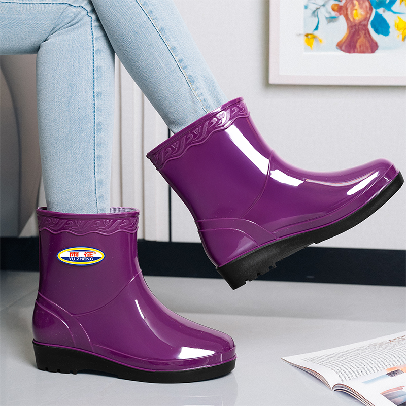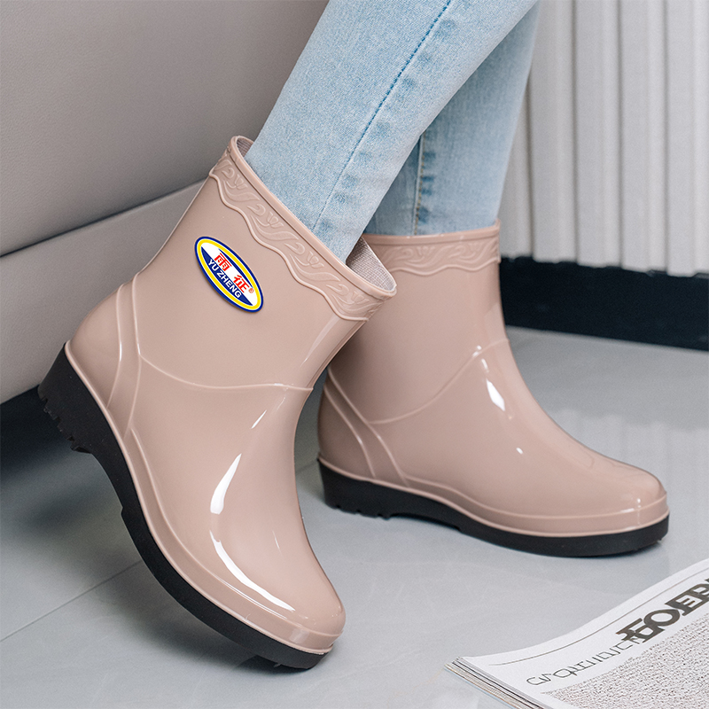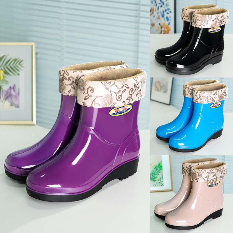 女冬季 短筒成人雨靴厨房加厚胶鞋 女士中筒保暖加绒防滑防水鞋 雨鞋