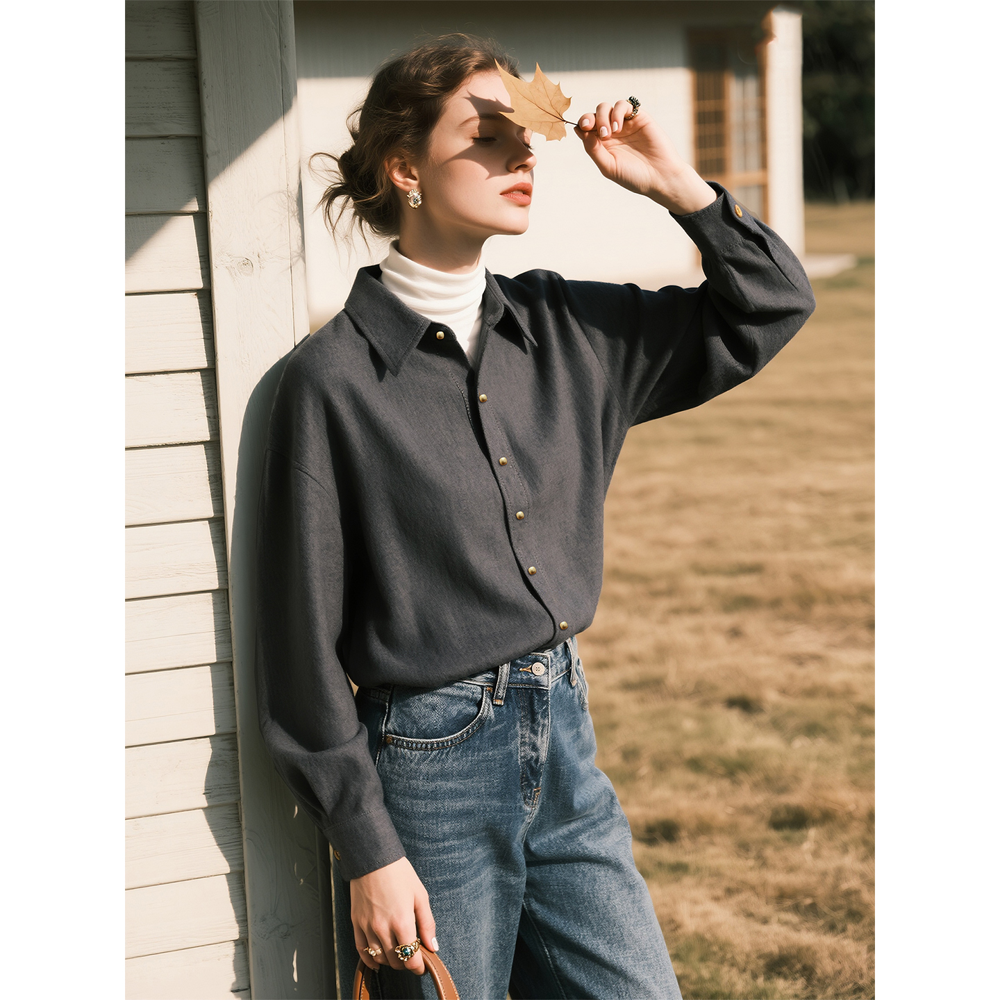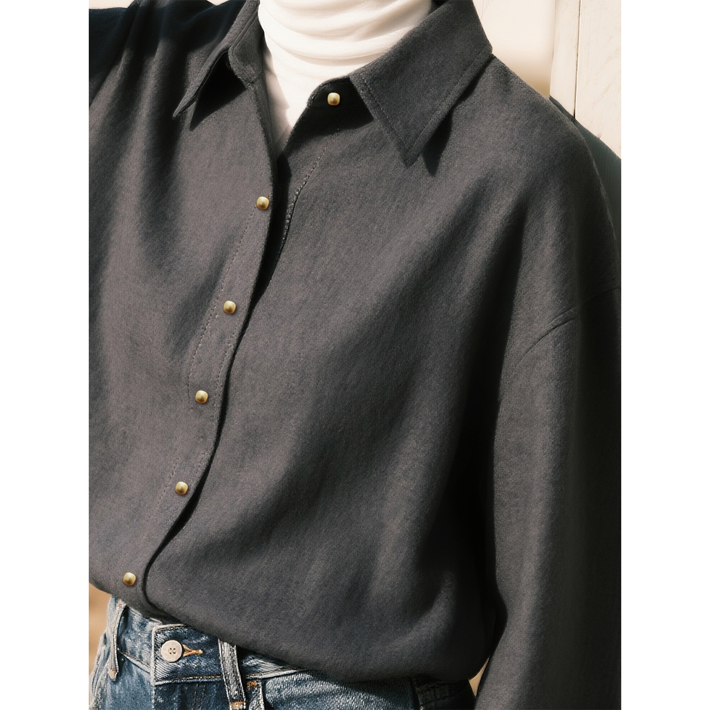 新款 垂感通勤金属扣衬衣2025年冬季 时尚 朗姿捏褶镂空设计感衬衫