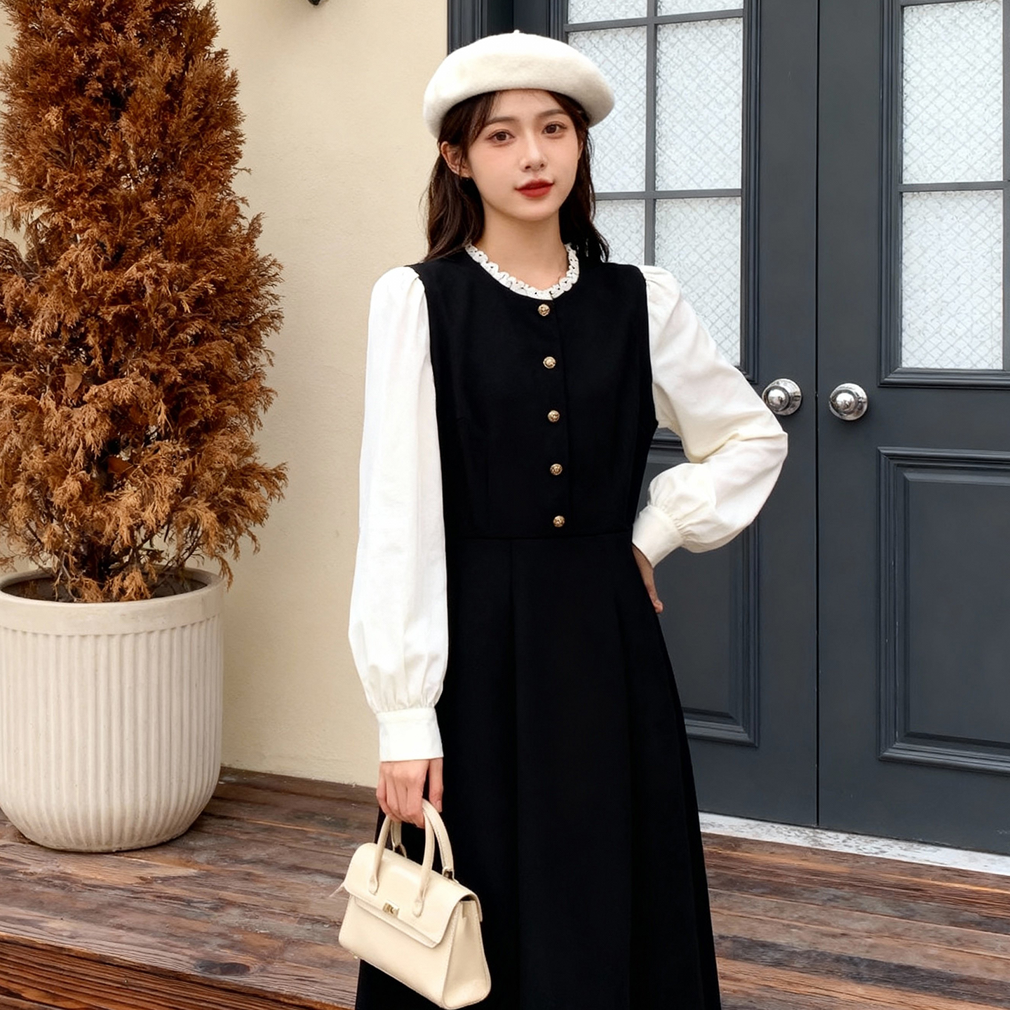 秋日连衣裙出席重要场合穿搭裙子 赢智尚黑色巨好看 陈数同款