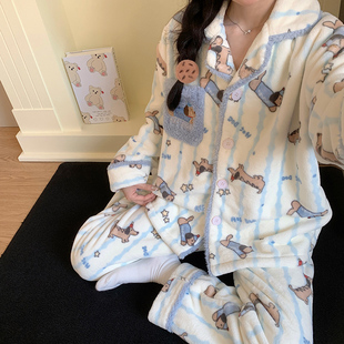 珊瑚绒加绒加厚法兰绒少女生家居服套装 腊肠狗卡通睡衣女款 秋冬季
