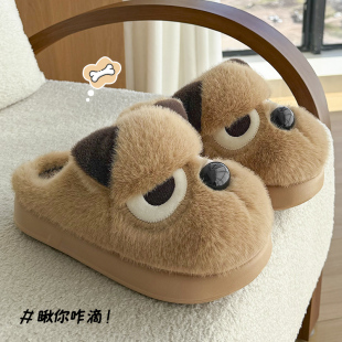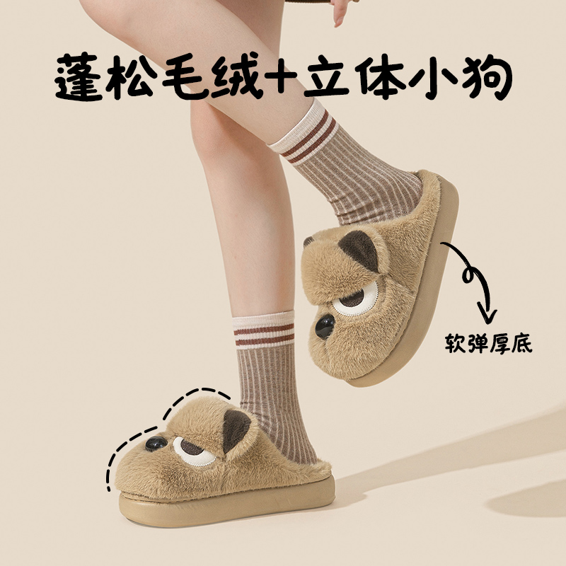 室内居家保暖防滑可爱情侣棉鞋 毛绒小狗棉拖鞋 2025新款 冬季 男 女款