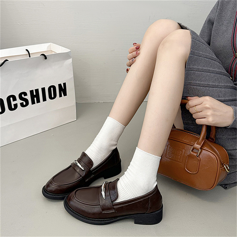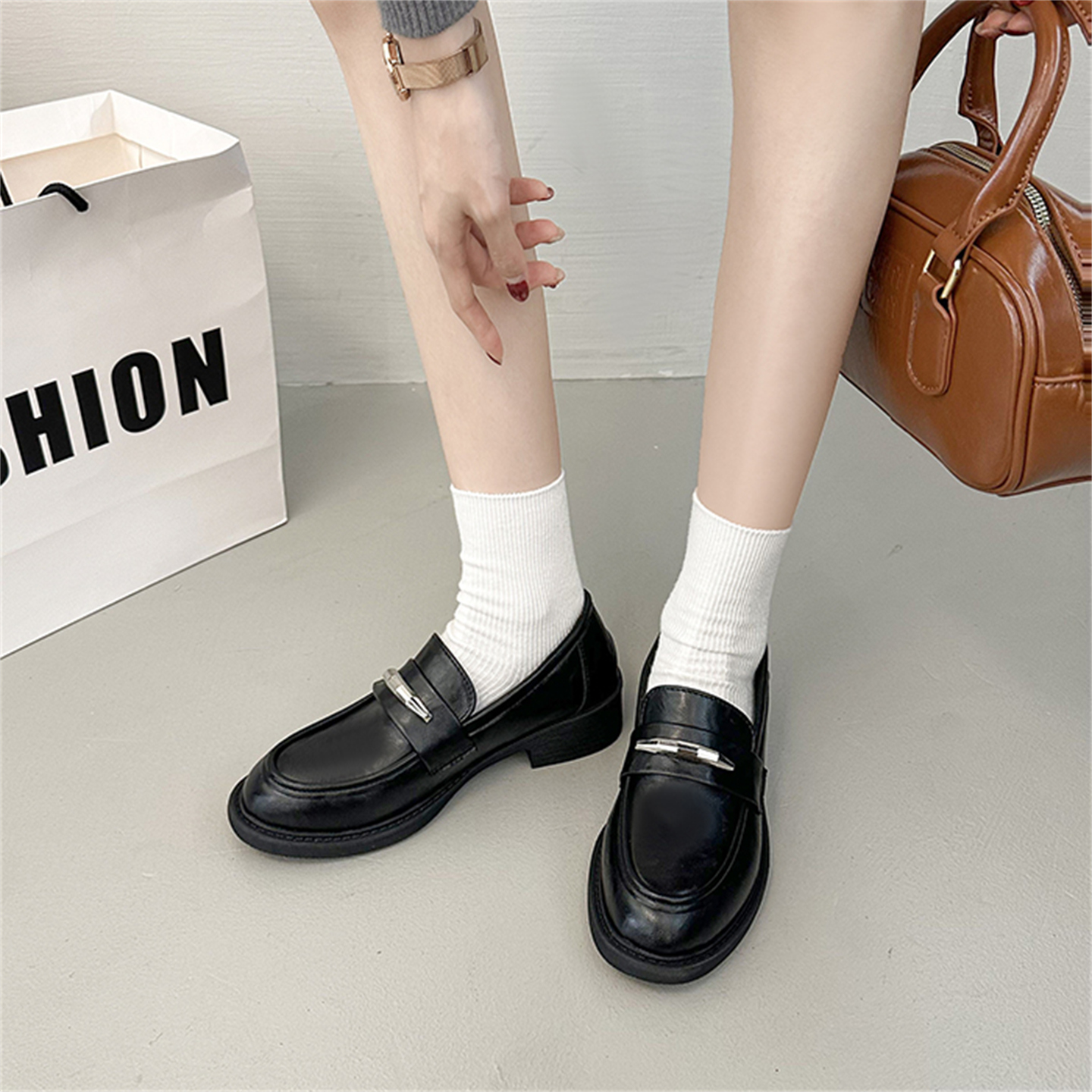 粗跟小个子增高小皮鞋 复古百搭乐福鞋 一脚蹬单鞋 新款 女2025年秋季