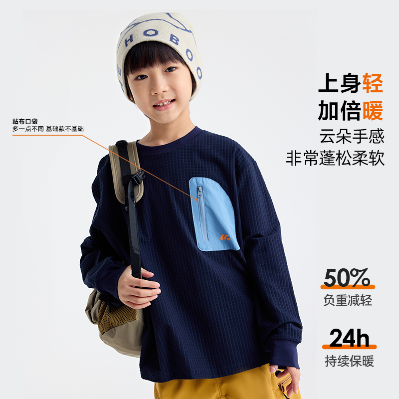 咕噜日记童装 男童魔方绒上衣休闲保暖内搭 儿童圆领卫衣2025秋冬季