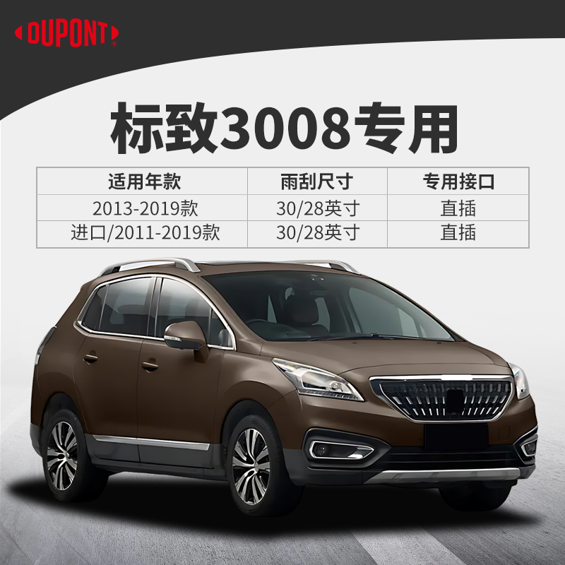 杜邦雨刮器无骨雨刷片适用于标致3008汽车2013款 胶条15静音18 原装