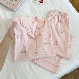 可爱2025新款 纯棉长袖 超火夏天全棉家居服可外穿 春秋季 睡衣女款