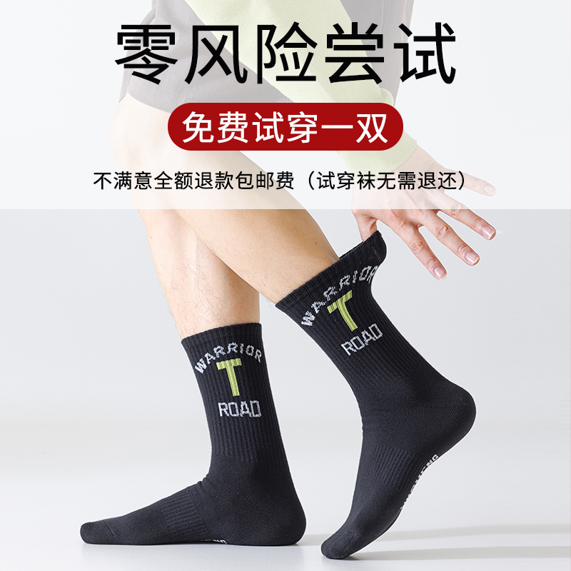 黑色商务棉袜 青少年男士 回力袜子男款 7A抗菌中筒袜吸汗防臭春秋季