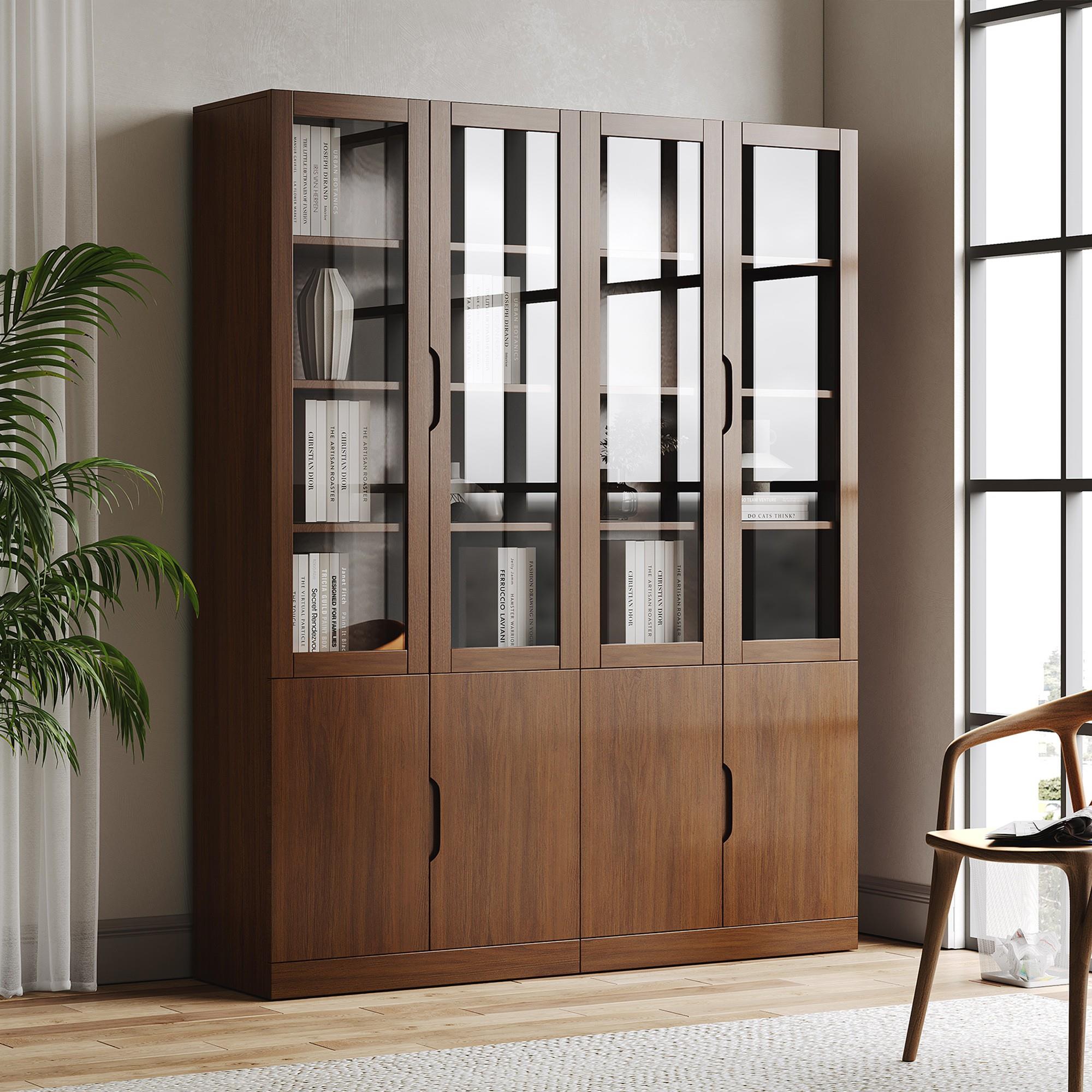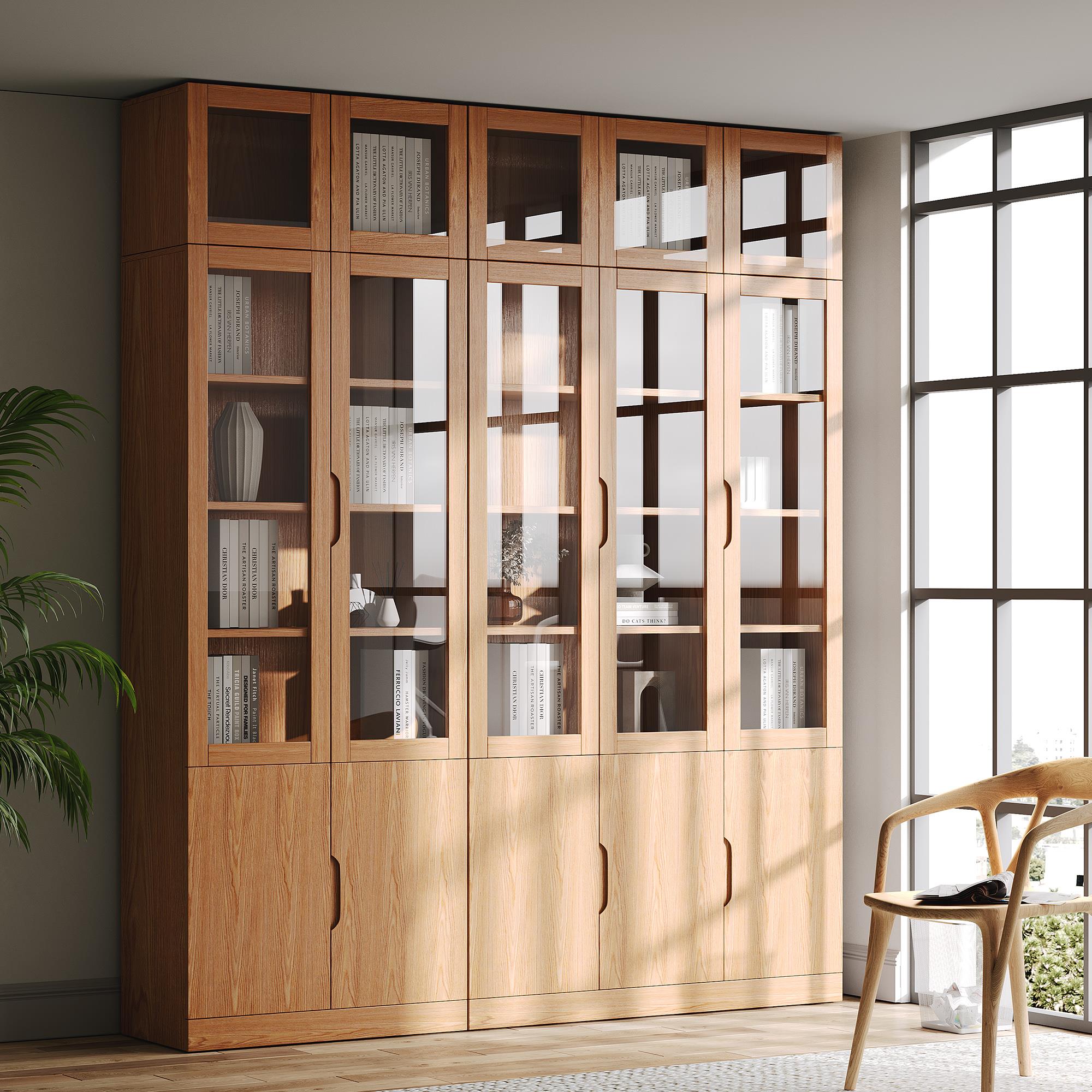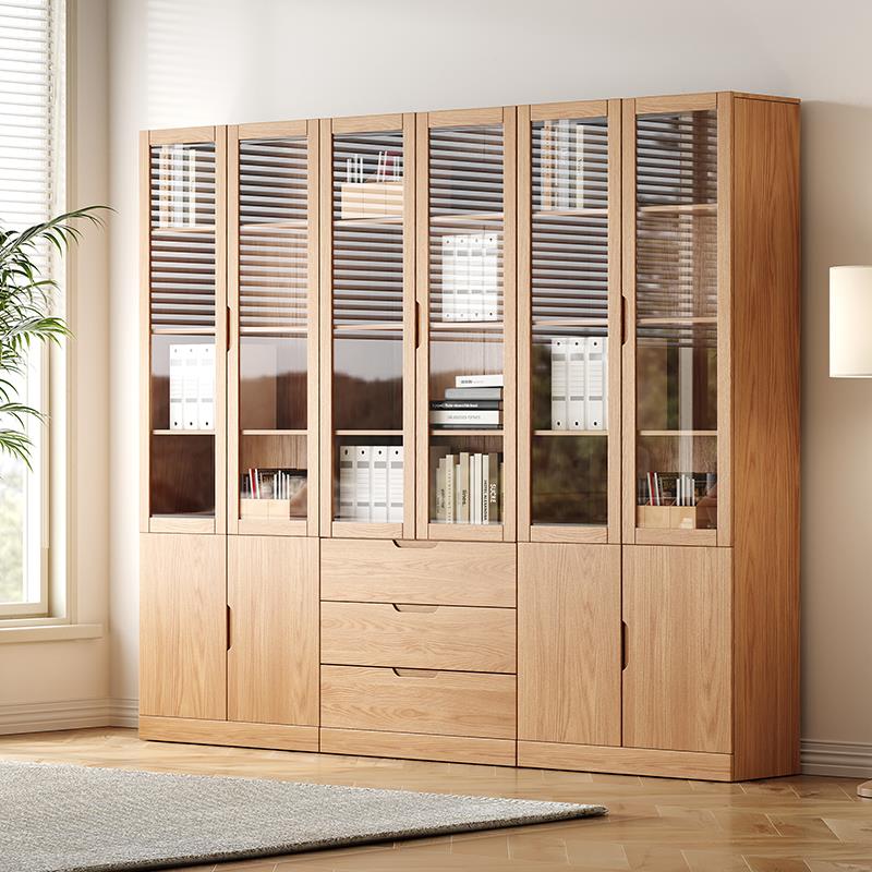 全实木橡木书柜带玻璃门组合书架书橱简约现代书房家用落地文件柜