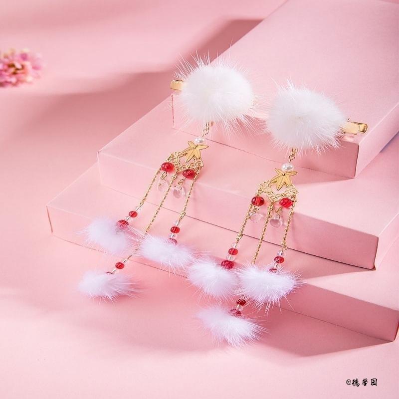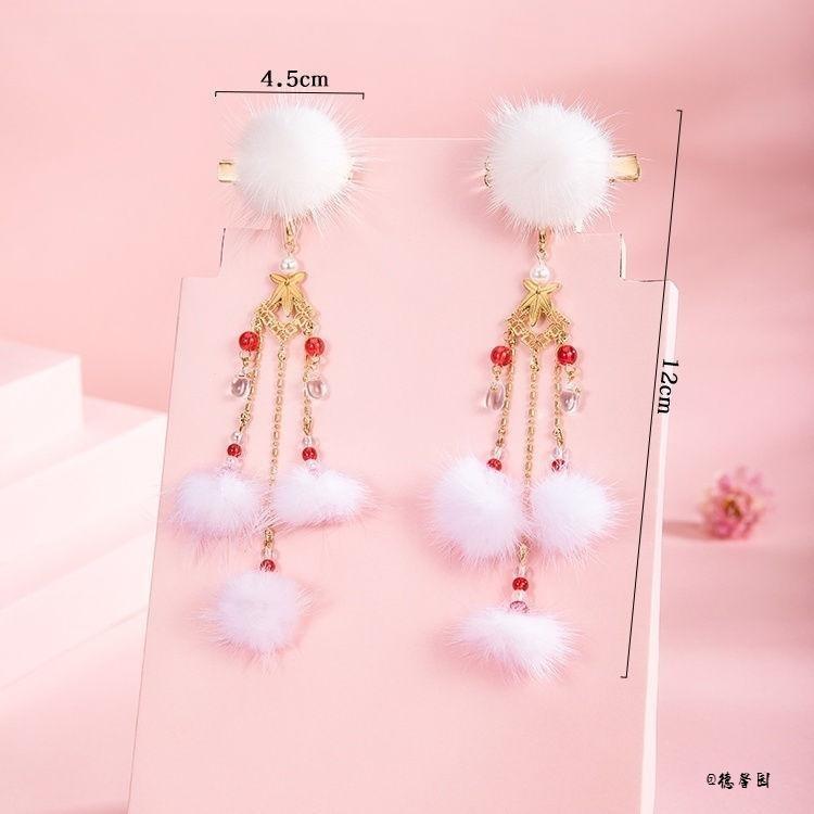气质冬季 配饰女毛毛百搭仙气耳饰复古装 超仙创意耳环汉服清新古装