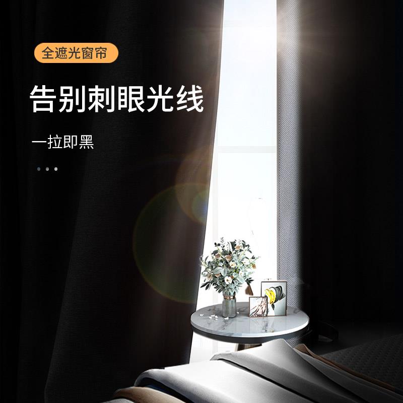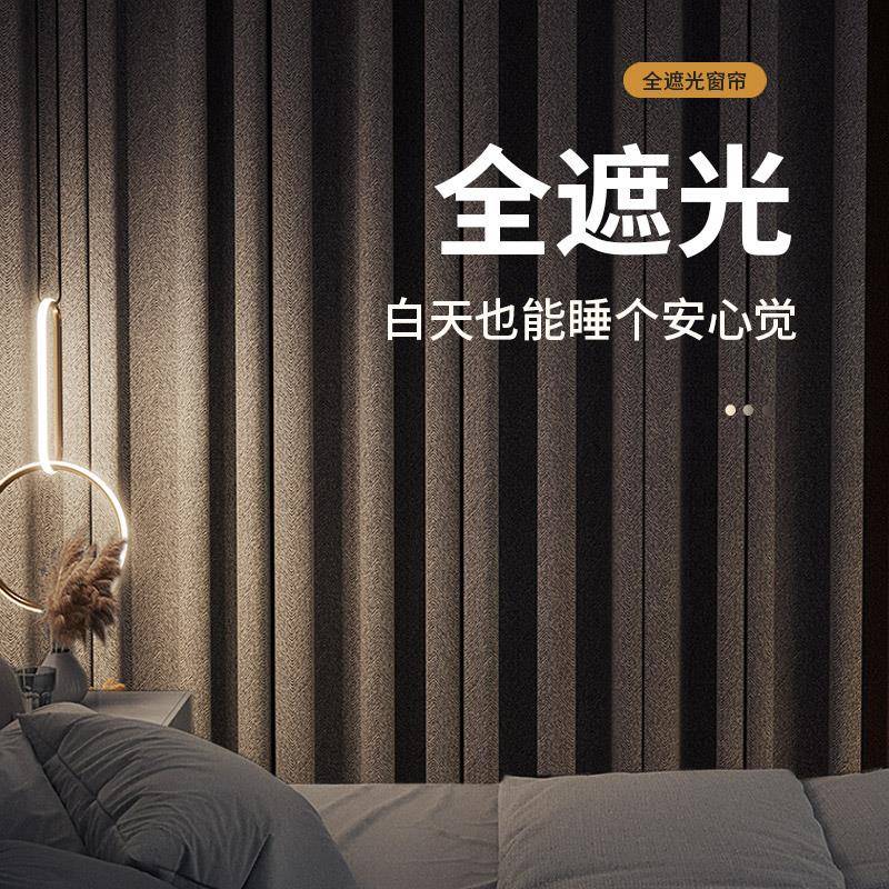 窗帘全遮光卧室隔热防晒2024新款 2025不透光遮阳布 客厅加厚挂钩式