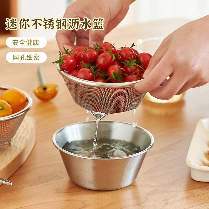 家用304迷你不锈钢沥水篮小洗水果盘过滤漏碗网篮洗菜盆淘米神器
