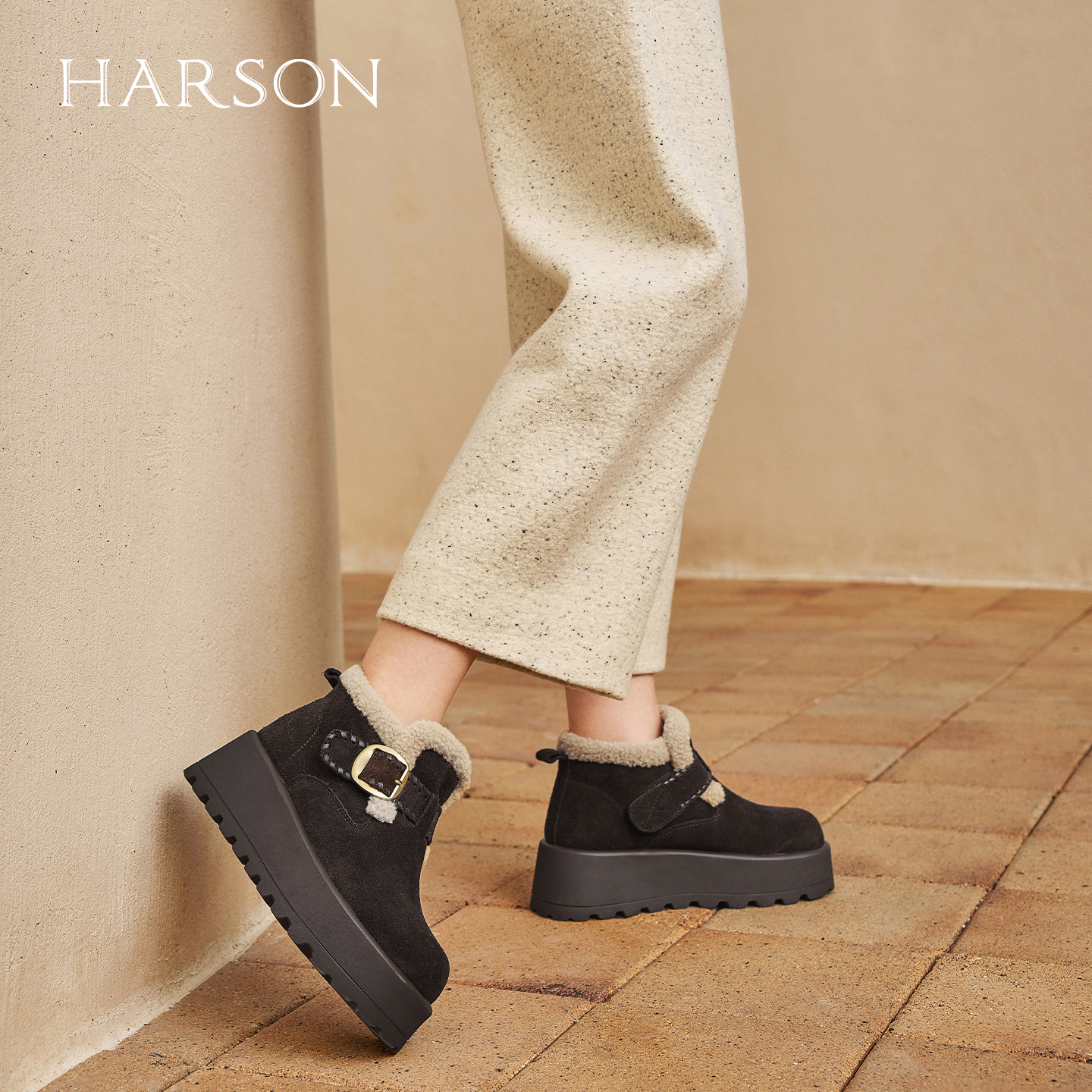 休闲厚底加绒棉鞋 哈森 25冬新款 冬日热奶茶 雪地靴女 HARSON