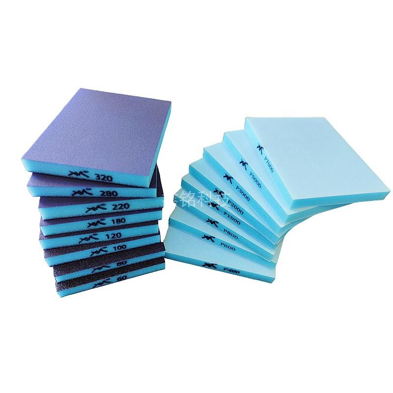 双面蓝色海绵砂纸块家俱油漆模型汽车打磨抛光棕刚玉海棉沙纸砂块