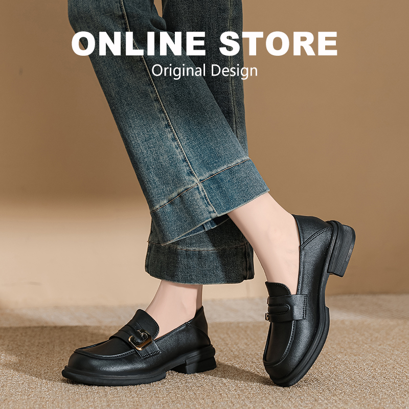 大码 厚底乐福鞋 英伦风粗跟加绒单鞋 秋冬一脚蹬小皮鞋 女2025新款