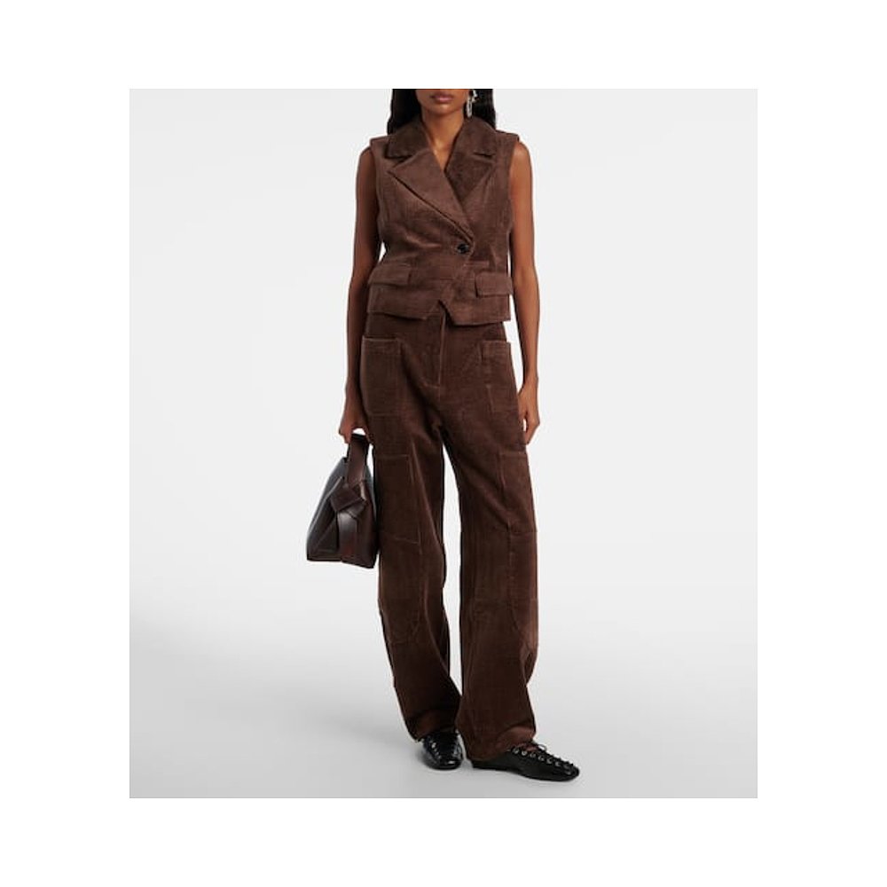 香港直邮潮奢 棉质灯芯绒背心 GANNI 女士 brown棕色 甘尼 1h可退