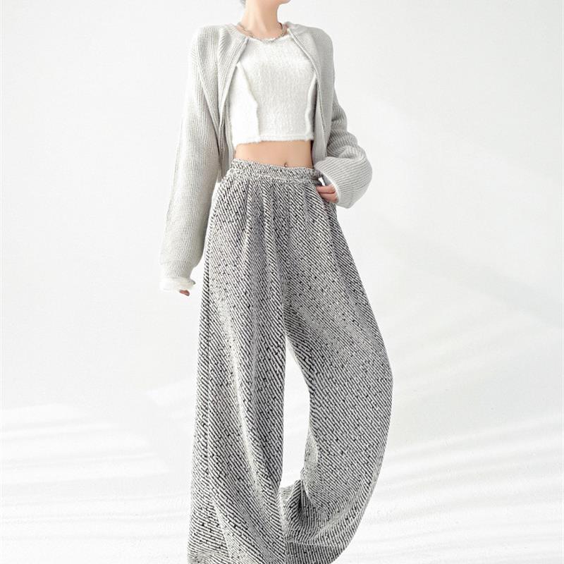 子 高腰垂感秋冬直筒休闲加绒裤 棕咖色雪尼尔阔腿裤 女春秋2025新款