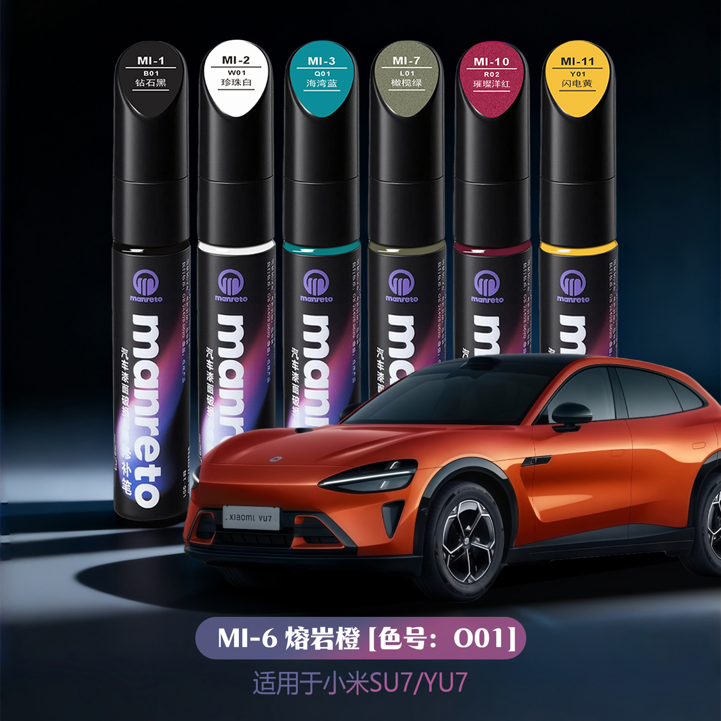 适用小米SU7 YU7熔岩橙色专用汽车漆面划痕修复补漆笔色号O01