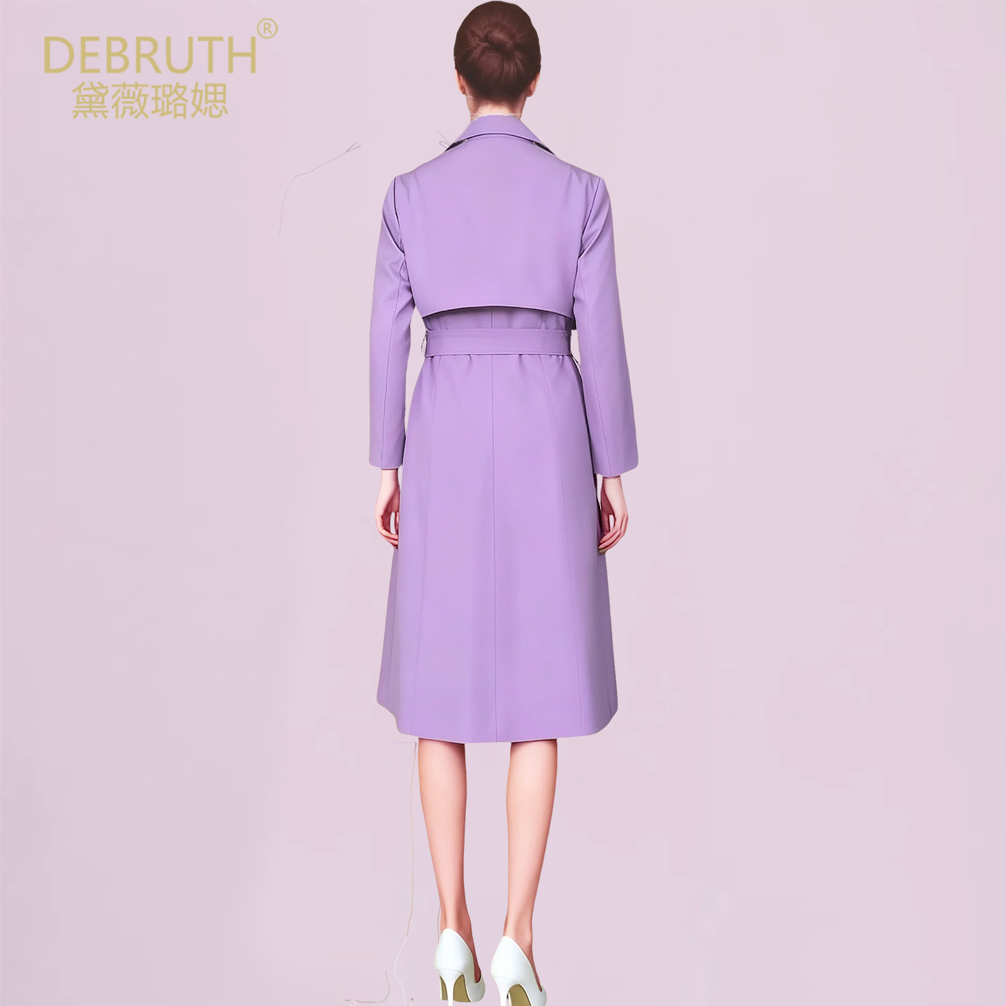 藏青色英伦风爆款 新款 外套 2025秋装 衣香丽影免烫抗皱风衣女中长款