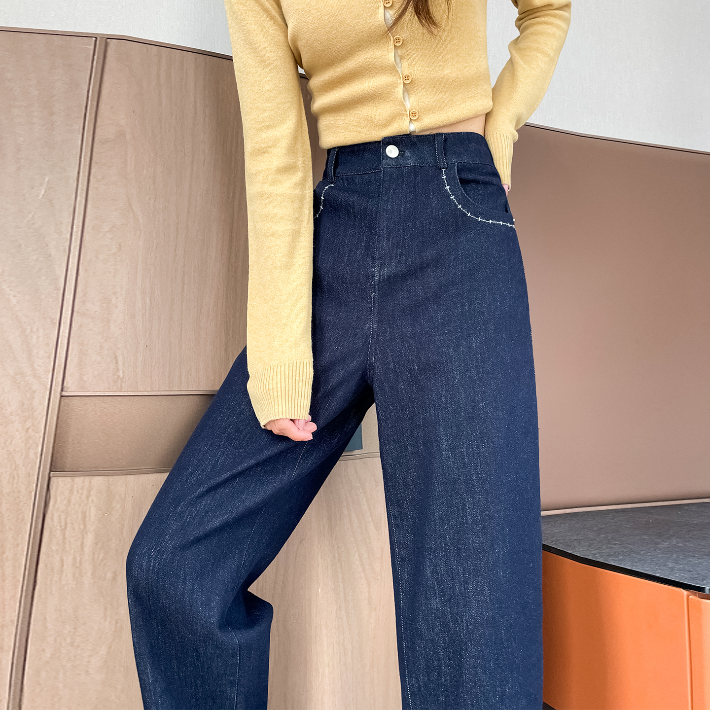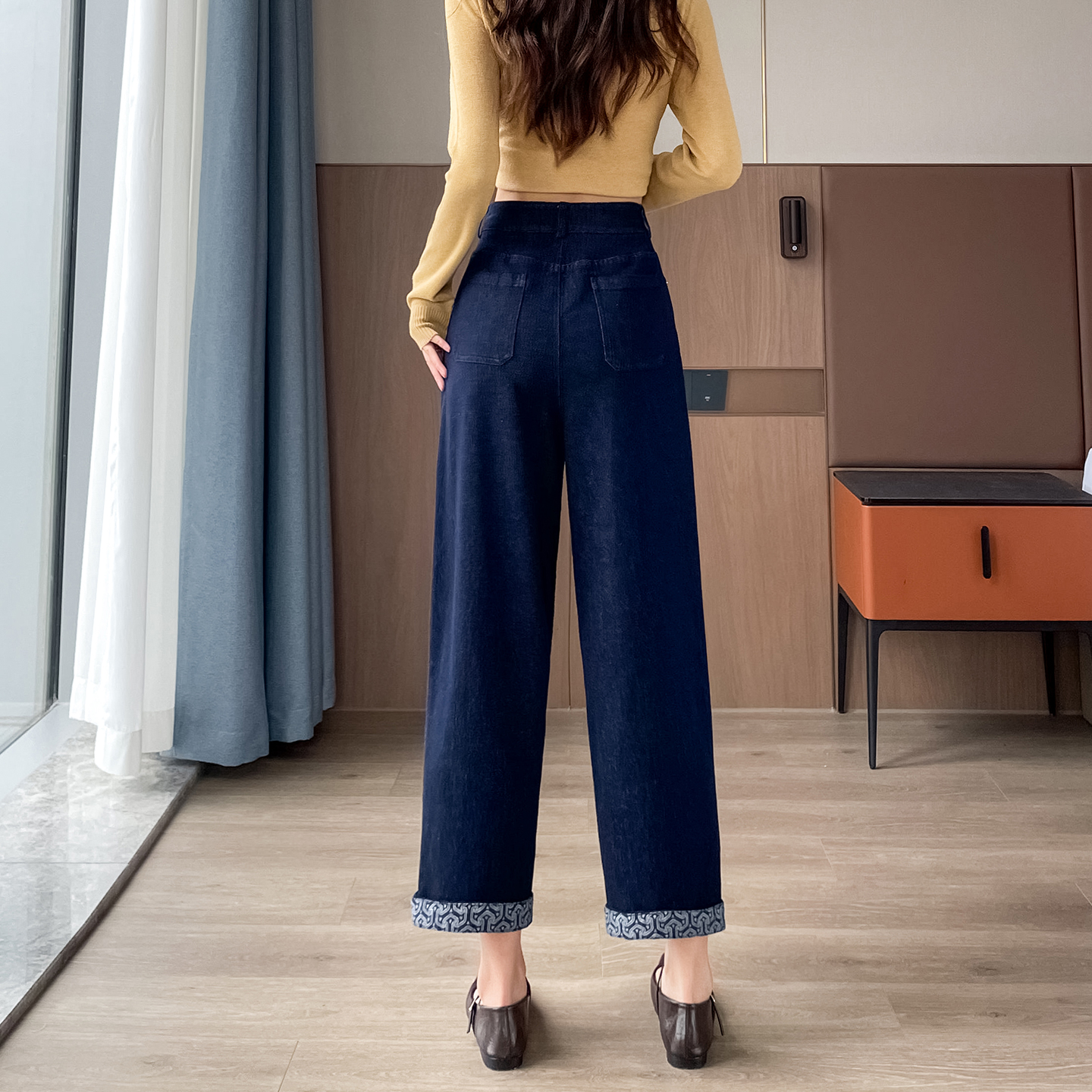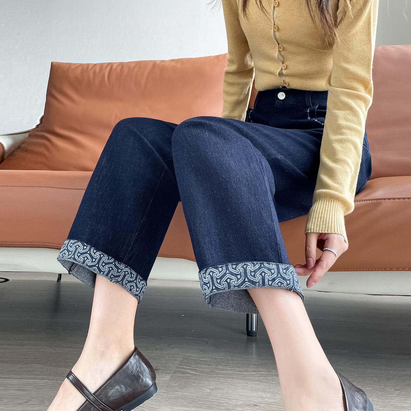 高腰显瘦时尚 女春秋2025新款 窄版 阔腿烟管裤 韩版 九分裤 卷边牛仔裤