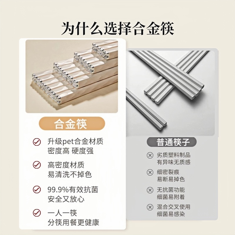 家用抗菌防霉合金筷子高档食品级餐具家庭专人专用一人一筷耐高温