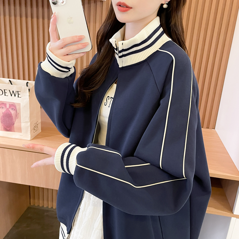 开衫 拼色立领设计感拉链薄款 宽松百搭大码 韩版 外套 卫衣女春秋新款