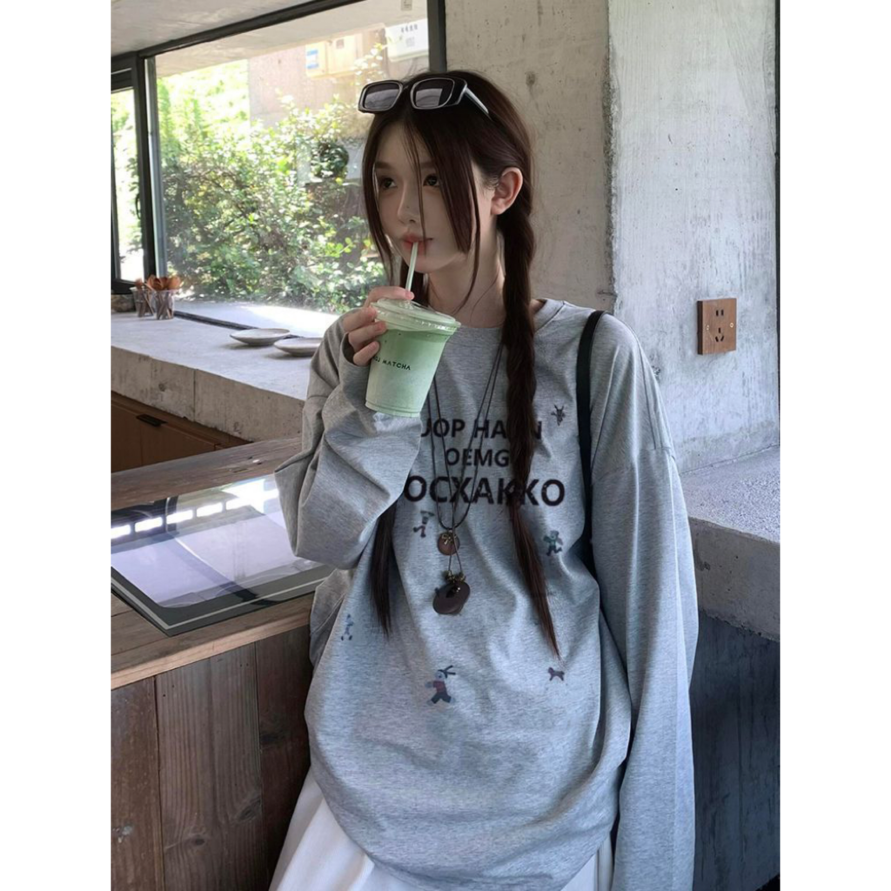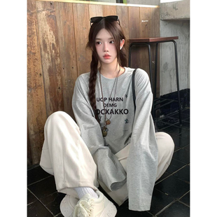 ins宽松百搭打底衫 T恤女早秋2025新款 慵懒风上衣 长袖 100%纯棉美式