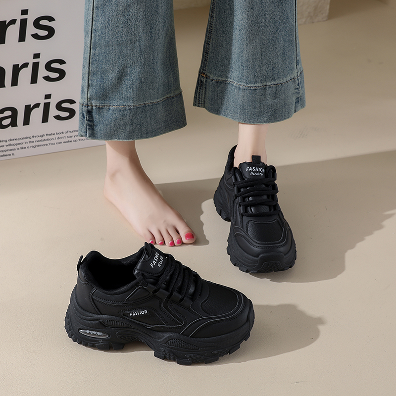运动鞋 厚底小黑鞋 显脚小轻便34码 增高7CM真皮老爹鞋 子 女2025秋季